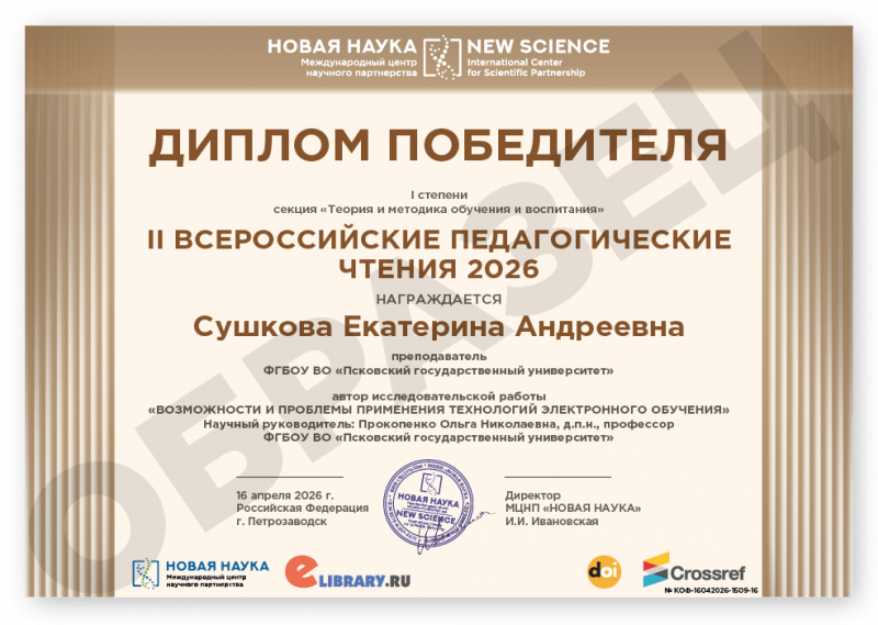 II Всероссийская научно-практическая конференция ВСЕРОССИЙСКИЕ ПЕДАГОГИЧЕСКИЕ ЧТЕНИЯ 2026 Код конференции: КОФ-1509 Дата проведения: 16 апреля 2026 г. К участию в конференции принимаются статьи объемом от 5 страниц. Сборник статей конференции с присвоением ISBN, УДК, ББК формируется в течение 3 дней после окончания приема статей и будет размещен на нашем сайте в разделе Архив конференций. Бесплатно каждому автору предоставляется: