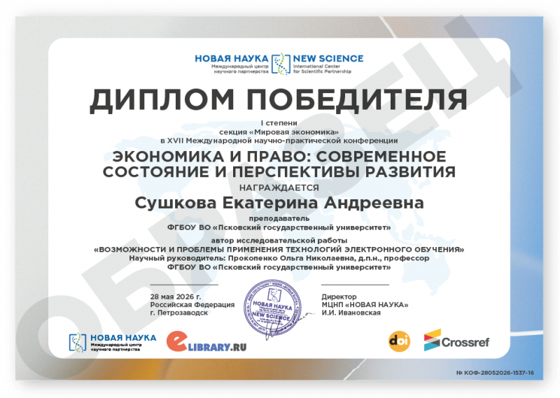 XVII Международная научно-практическая конференция ЭКОНОМИКА И ПРАВО: СОВРЕМЕННОЕ СОСТОЯНИЕ И ПЕРСПЕКТИВЫ РАЗВИТИЯ Код конференции: КОФ-1537 Дата проведения: 28 мая 2026 г. К участию в конференции принимаются статьи объемом от 5 страниц. Сборник статей конференции с присвоением ISBN, УДК, ББК формируется в течение 3 дней после окончания приема статей и будет размещен на нашем сайте в разделе Архив конференций. Бесплатно каждому автору предоставляется: