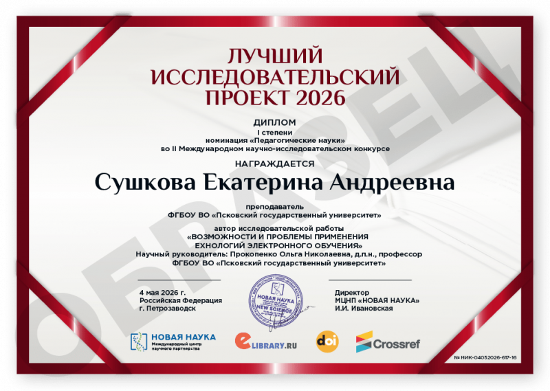 II Международный научно-исследовательский конкурс ЛУЧШИЙ ИССЛЕДОВАТЕЛЬСКИЙ ПРОЕКТ 2026 Код конкурса: НИК-617 Дата проведения: 4 мая 2026 г. К участию в конкурсе принимаются статьи объемом от 5 до 12 страниц на русском и английском языках. Авторами одной конкурсной работы могут быть несколько человек. По итогам конкурса его участники получают: 1. Публикацию своей конкурсной работы (статьи) в сборнике статей конкурса «ЛУЧШИЙ ИССЛЕДОВАТЕЛЬСКИЙ ПРОЕКТ 2026». Сборнику присваиваются УДК, ББК, ISBN; 2. Именные Дипломы (I, II или III степени) по решению редколлегии; 3. Размещение сборника и публикации участника в Научной электронной библиотеке eLIBRARY (Договор №467-03/2018K); 4. DOI - международный цифровой идентификатор публикации (см. условия участия); 5. Бесплатный сборник статей конкурса «ЛУЧШИЙ ИССЛЕДОВАТЕЛЬСКИЙ ПРОЕКТ 2026» (в электронном виде); 6. По итогам конкурсов предоставляется выписка из Протокола рассмотрения и оценки конкурсных работ и другие необходимые для отчетности документы (по запросу участника). Сборник статей конкурса формируется в течение 5 дней после окончания приема конкурсных работ (статей) и будет размещен на нашем сайте в разделе Архив конкурсов. Оргвзнос: 990 руб. |