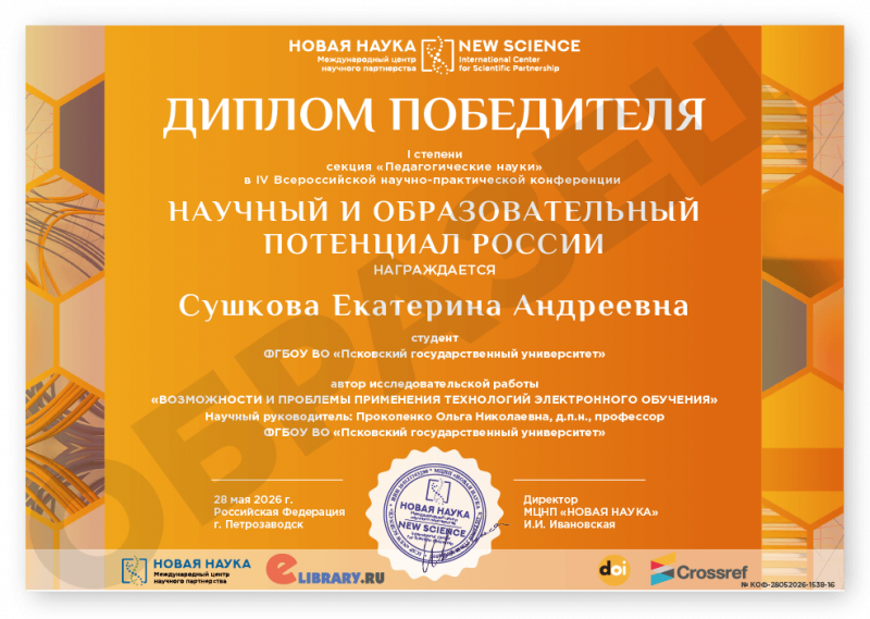 IV Всероссийская научно-практическая конференция НАУЧНЫЙ И ОБРАЗОВАТЕЛЬНЫЙ ПОТЕНЦИАЛ РОССИИ Код конференции: КОФ-1538 Дата проведения: 28 мая 2026 г. К участию в конференции принимаются статьи объемом от 5 страниц. Сборник статей конференции с присвоением ISBN, УДК, ББК формируется в течение 3 дней после окончания приема статей и будет размещен на нашем сайте в разделе Архив конференций. Бесплатно каждому автору предоставляется: