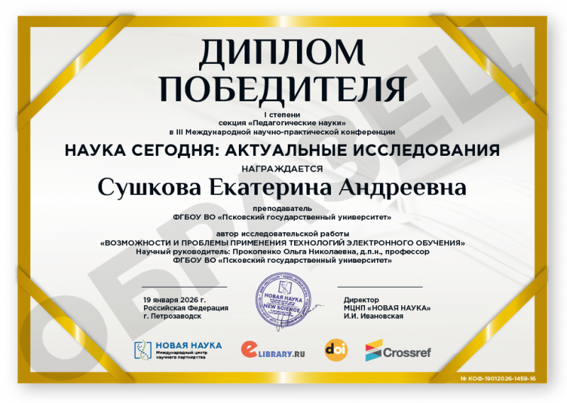 III Международная научно-практическая конференция НАУКА СЕГОДНЯ: АКТУАЛЬНЫЕ ИССЛЕДОВАНИЯ Код конференции: КОФ-1459 Дата проведения: 19 января 2026 г. К участию в конференции принимаются статьи объемом от 5 страниц. Сборник статей конференции с присвоением ISBN, УДК, ББК формируется в течение 3 дней после окончания приема статей и будет размещен на нашем сайте в разделе Архив конференций. Бесплатно каждому автору предоставляется: