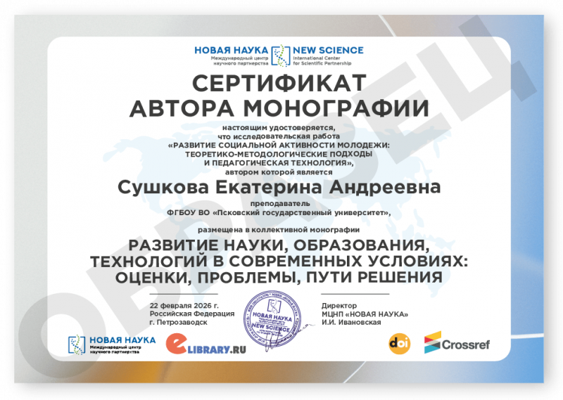 Работы объемом от 15 страниц принимаются до 22 февраля 2026 г. (включительно). Каждая работа будет представлена отдельной главой монографии. Срок публикации: 7 дней