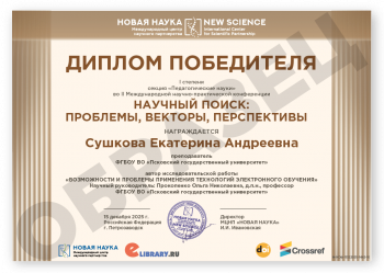 II Международная научно-практическая конференция НАУЧНЫЙ ПОИСК: ПРОБЛЕМЫ, ВЕКТОРЫ, ПЕРСПЕКТИВЫ Код конференции: КОФ-1442 Дата проведения: 15 декабря 2025 г. К участию в конференции принимаются статьи объемом от 5 страниц. Сборник статей конференции с присвоением ISBN, УДК, ББК формируется в течение 3 дней после окончания приема статей и будет размещен на нашем сайте в разделе Архив конференций. Бесплатно каждому автору предоставляется: