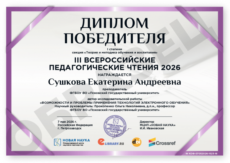 СЕКЦИИ КОНФЕРЕНЦИИ Секция 1. Теория и методика обучения и воспитанияСекция 2. Инновационные технологии в педагогической деятельности Секция 3. Цифровизация в образовании Секция 4. Теория и методика профессионального образования Секция 5. Теория и методика среднего образования Секция 6. Теория и методика дошкольного образования Секция 7. Теория и методика дополнительного образования Секция 8. Экологическое образование и воспитание Секция 9. ФГОС и особенности его применения Секция 10. Открытое занятие и особенности его проведения Секция 11. Патриотическое воспитание Секция 12. Коррекционная педагогика Секция 13. Психология Секция 14. История педагогики и образования Секция 15. Теория и методика физического воспитания Секция 16. Теория, методика и организация социально-культурной деятельности Секция 17. Музыкальное образование Секция 18. Работа с родителями Секция 19. Актуальные вопросы современного образования |