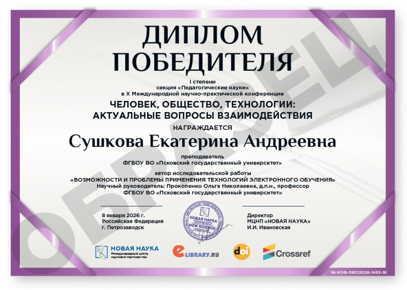 X Международная научно-практическая конференция ЧЕЛОВЕК, ОБЩЕСТВО, ТЕХНОЛОГИИ: АКТУАЛЬНЫЕ ВОПРОСЫ ВЗАИМОДЕЙСТВИЯ Код конференции: КОФ-1453 Дата проведения: 8 января 2026 г. К участию в конференции принимаются статьи объемом от 5 страниц. Сборник статей конференции с присвоением ISBN, УДК, ББК формируется в течение 3 дней после окончания приема статей и будет размещен на нашем сайте в разделе Архив конференций. Бесплатно каждому автору предоставляется: