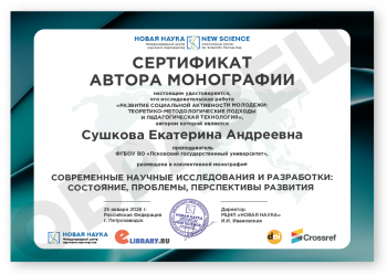 > СОВРЕМЕННЫЕ НАУЧНЫЕ ИССЛЕДОВАНИЯ И РАЗРАБОТКИ: СОСТОЯНИЕ, ПРОБЛЕМЫ, ПЕРСПЕКТИВЫ РАЗВИТИЯ
