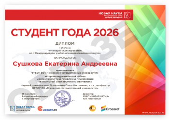 II Международный учебно-исследовательский конкурс СТУДЕНТ ГОДА 2026 Дата проведения: 13 мая 2026 г. К участию в конкурсе принимаются учебно- и научно-исследовательские статьи объемом от 5 до 12 страниц на русском и английском языках. Авторами одной конкурсной работы могут быть несколько человек. По итогам конкурса его участники получают: 1. Публикацию своей конкурсной работы (статьи) в сборнике статей конкурса «СТУДЕНТ ГОДА 2026». Сборнику присваиваются УДК, ББК, ISBN; 2. Бесплатные именные Дипломы I, II или III степени по решению редколлегии; 3. Размещение сборника и публикации участника в Научной электронной библиотеке eLIBRARY (Договор №467-03/2018K) в открытом доступе; 4. Бесплатный сборник статей конкурса «СТУДЕНТ ГОДА 2026» (в электронном виде); 5. Присвоение DOI - международного цифрового идентификатора научной публикации, регистрация публикации в Crossref (см. условия участия); 6. По итогам Конкурса предоставляется выписка из Протокола рассмотрения и оценки конкурсных работ, выписка из Приказа и другие необходимые для отчетности документы. Сборник статей конкурса формируется в течение 5 дней после окончания приема конкурсных статей и будет размещен на нашем сайте в разделе Архив конкурсов. Об итогах конкурса участники дополнительно будут проинформированы по электронной почте. Научного руководителя можно указать в конкурсной статье. По итогам мероприятия научный руководитель (если он есть) указывается в Дипломе участника и индексируется в eLIBRARY. Оргвзнос: 990 руб. |
