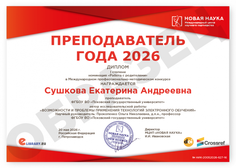 Международный профессионально-методический конкурс ПРЕПОДАВАТЕЛЬ ГОДА 2026 Дата проведения: 20 мая 2026 г. К участию в конкурсе принимаются статьи объемом от 5 до 12 страниц на русском и английском языках. Авторами одной конкурсной работы могут быть несколько человек. По итогам Конкурса его участники получают: 1. Публикацию конкурсной работы (статьи) в сборнике статей конкурса «ПРЕПОДАВАТЕЛЬ ГОДА 2026». Сборнику присваиваются УДК, ББК, ISBN; 2. Бесплатные именные Дипломы (I, II или III степени) по решению редколлегии; 4. Размещение сборника и публикации участника в Научной электронной библиотеке eLIBRARY (Договор №467-03/2018K) в открытом доступе; 5. DOI - международный цифровой идентификатор публикации (см. условия участия); 6. По итогам Конкурса предоставляется выписка из Протокола рассмотрения и оценки конкурсных работ, выписка из Приказа и другие необходимые документы (по запросу участника). Сборник статей конкурса формируется в течение 5-10 дней после окончания приема конкурсных статей и будет размещен на нашем сайте в разделе Архив конкурсов. Об итогах конкурса участники дополнительно будут проинформированы по электронной почте. Оргвзнос - 890 руб. |