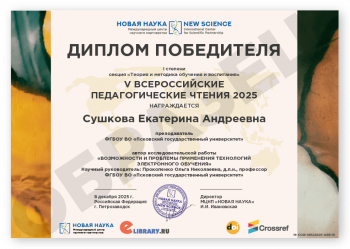 V Всероссийская научно-практическая конференция ВСЕРОССИЙСКИЕ ПЕДАГОГИЧЕСКИЕ ЧТЕНИЯ 2025 Код конференции: КОФ-1438 Дата проведения: 8 декабря 2025 г. К участию в конференции принимаются статьи объемом от 5 страниц. Сборник статей конференции с присвоением ISBN, УДК, ББК формируется в течение 3 дней после окончания приема статей и будет размещен на нашем сайте в разделе Архив конференций. Бесплатно каждому автору предоставляется: