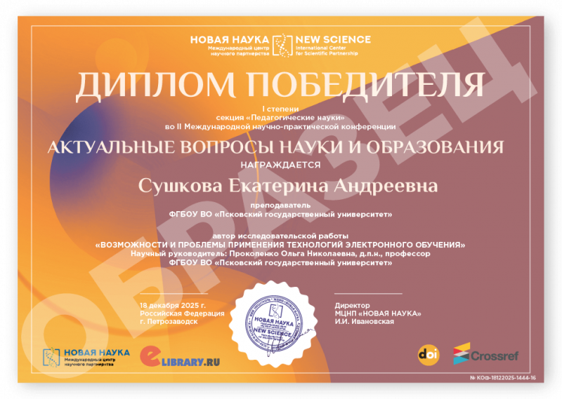 II Международная научно-практическая конференция АКТУАЛЬНЫЕ ВОПРОСЫ НАУКИ И ОБРАЗОВАНИЯ Код конференции: КОФ-1444 Дата проведения: 18 декабря 2025 г. К участию в конференции принимаются статьи объемом от 5 страниц. Сборник статей конференции с присвоением ISBN, УДК, ББК формируется в течение 3 дней после окончания приема статей и будет размещен на нашем сайте в разделе Архив конференций. Бесплатно каждому автору предоставляется: