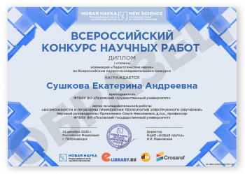 Всероссийский научно-исследовательский конкурс ВСЕРОССИЙСКИЙ КОНКУРС НАУЧНЫХ РАБОТ Код конкурса: НИК-577 Дата проведения: 24 декабря 2025 г. К участию в конкурсе принимаются статьи объемом от 5 до 12 страниц на русском и английском языках. Авторами одной конкурсной работы могут быть несколько человек. По итогам конкурса его участники получают: 1. Публикацию своей конкурсной работы (статьи) в сборнике статей конкурса «ВСЕРОССИЙСКИЙ КОНКУРС НАУЧНЫХ РАБОТ». Сборнику присваиваются УДК, ББК, ISBN; 2. Именные Дипломы (I, II или III степени) по решению редколлегии; 3. Размещение сборника и публикации участника в Научной электронной библиотеке eLIBRARY (Договор №467-03/2018K); 4. DOI - международный цифровой идентификатор публикации (см. условия участия); 5. Бесплатный сборник статей конкурса «ВСЕРОССИЙСКИЙ КОНКУРС НАУЧНЫХ РАБОТ» (в электронном виде); 6. По итогам конкурсов предоставляется выписка из Протокола рассмотрения и оценки конкурсных работ и другие необходимые для отчетности документы (по запросу участника). Сборник статей конкурса формируется в течение 5 дней после окончания приема конкурсных работ (статей) и будет размещен на нашем сайте в разделе Архив конкурсов. Оргвзнос: 990 руб. |
