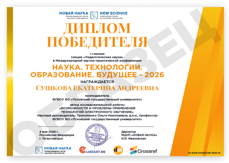 Международная научно-практическая конференция НАУКА. ТЕХНОЛОГИИ. ОБРАЗОВАНИЕ. БУДУЩЕЕ - 2026 Код конференции: КОФ-1520 Дата проведения: 4 мая 2026 г. К участию в конференции принимаются статьи объемом от 5 страниц. Сборник статей конференции с присвоением ISBN, УДК, ББК формируется в течение 3 дней после окончания приема статей и будет размещен на нашем сайте в разделе Архив конференций. Бесплатно каждому автору предоставляется: