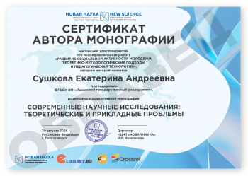 Бесплатно каждому автору Сертификат автора монографии