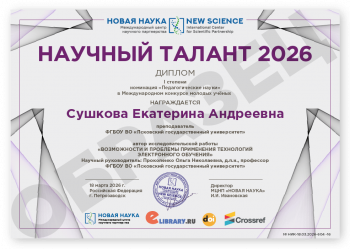 Международный конкурс молодых учёных НАУЧНЫЙ ТАЛАНТ 2026 Код конкурса: НИК-604 Дата проведения: 18 марта 2026 г. К участию в конкурсе принимаются статьи объемом от 5 до 12 страниц на русском и английском языках. Авторами одной конкурсной работы могут быть несколько человек. По итогам конкурса его участники получают: 1. Публикацию своей конкурсной работы (статьи) в сборнике статей конкурса «НАУЧНЫЙ ТАЛАНТ 2026». Сборнику присваиваются УДК, ББК, ISBN; 2. Именные Дипломы (I, II или III степени) по решению редколлегии; 3. Размещение сборника и публикации участника в Научной электронной библиотеке eLIBRARY (Договор №467-03/2018K); 4. DOI - международный цифровой идентификатор публикации (см. условия участия); 5. Бесплатный сборник статей конкурса «НАУЧНЫЙ ТАЛАНТ 2026» (в электронном виде); 6. По итогам конкурсов предоставляется выписка из Протокола рассмотрения и оценки конкурсных работ и другие необходимые для отчетности документы (по запросу участника). Сборник статей конкурса формируется в течение 5 дней после окончания приема конкурсных работ (статей) и будет размещен на нашем сайте в разделе Архив конкурсов. Оргвзнос: 790 руб. |