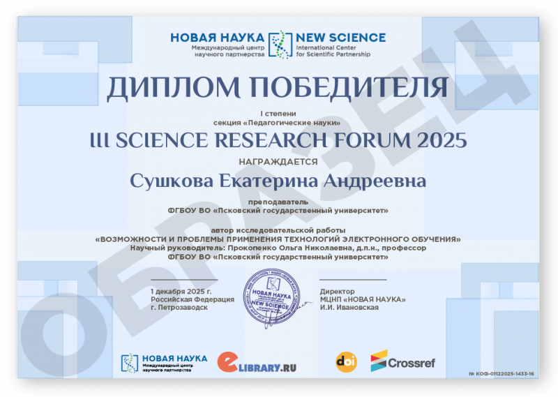 III Международная научно-практическая конференция SCIENCE RESEARCH FORUM 2025 Код конференции: КОФ-1433 Дата проведения: 1 декабря 2025 г. К участию в конференции принимаются статьи объемом от 5 страниц. Сборник статей конференции с присвоением ISBN, УДК, ББК формируется в течение 3 дней после окончания приема статей и будет размещен на нашем сайте в разделе Архив конференций. Бесплатно каждому автору предоставляется: