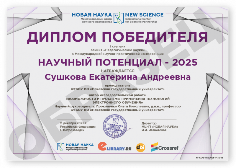 Международная научно-практическая конференция НАУЧНЫЙ ПОТЕНЦИАЛ - 2025 Код конференции: КОФ-1439 Дата проведения: 11 декабря 2025 г. К участию в конференции принимаются статьи объемом от 5 страниц. Сборник статей конференции с присвоением ISBN, УДК, ББК формируется в течение 3 дней после окончания приема статей и будет размещен на нашем сайте в разделе Архив конференций. Бесплатно каждому автору предоставляется: