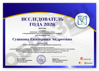 Международный научно-исследовательский конкурс ИССЛЕДОВАТЕЛЬ ГОДА 2026 Код конкурса: НИК-625 Дата проведения: 18 мая 2026 г. К участию в конкурсе принимаются статьи объемом от 5 до 12 страниц на русском и английском языках. Авторами одной конкурсной работы могут быть несколько человек. По итогам конкурса его участники получают: 1. Публикацию своей конкурсной работы (статьи) в сборнике статей конкурса «ИССЛЕДОВАТЕЛЬ ГОДА 2026». Сборнику присваиваются УДК, ББК, ISBN; 2. Именные Дипломы (I, II или III степени) по решению редколлегии; 3. Размещение сборника и публикации участника в Научной электронной библиотеке eLIBRARY (Договор №467-03/2018K); 4. DOI - международный цифровой идентификатор публикации (см. условия участия); 5. Бесплатный сборник статей конкурса «ИССЛЕДОВАТЕЛЬ ГОДА 2026» (в электронном виде); 6. По итогам конкурсов предоставляется выписка из Протокола рассмотрения и оценки конкурсных работ и другие необходимые для отчетности документы (по запросу участника). Сборник статей конкурса формируется в течение 5 дней после окончания приема конкурсных работ (статей) и будет размещен на нашем сайте в разделе Архив конкурсов. Оргвзнос: 990 руб. |