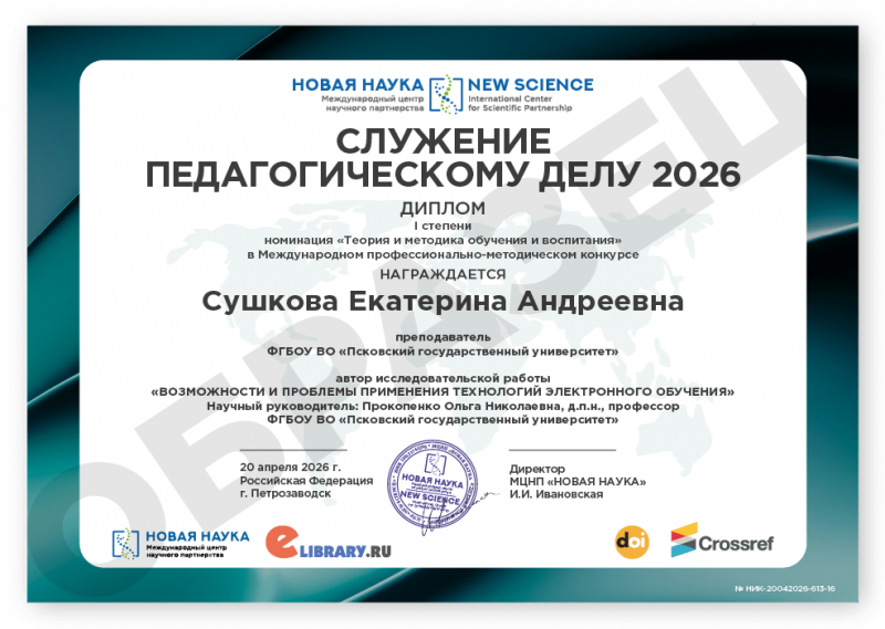 Международный профессионально-методический конкурс СЛУЖЕНИЕ ПЕДАГОГИЧЕСКОМУ ДЕЛУ 2026 Код конкурса: НИК-613 Дата проведения: 20 апреля 2026 г. К участию в конкурсе принимаются статьи объемом от 5 до 12 страниц на русском и английском языках. Авторами одной конкурсной работы могут быть несколько человек. По итогам конкурса его участники получают: 1. Публикацию своей конкурсной работы (статьи) в сборнике статей конкурса «СЛУЖЕНИЕ ПЕДАГОГИЧЕСКОМУ ДЕЛУ 2026». Сборнику присваиваются УДК, ББК, ISBN; 2. Именные Дипломы (I, II или III степени) по решению редколлегии; 3. Размещение сборника и публикации участника в Научной электронной библиотеке eLIBRARY (Договор №467-03/2018K); 4. DOI - международный цифровой идентификатор публикации (см. условия участия); 5. Бесплатный сборник статей конкурса «СЛУЖЕНИЕ ПЕДАГОГИЧЕСКОМУ ДЕЛУ 2026» (в электронном виде); 6. По итогам конкурсов предоставляется выписка из Протокола рассмотрения и оценки конкурсных работ и другие необходимые для отчетности документы (по запросу участника). Сборник статей конкурса формируется в течение 5 дней после окончания приема конкурсных работ (статей) и будет размещен на нашем сайте в разделе Архив конкурсов. Оргвзнос: 790 руб. |