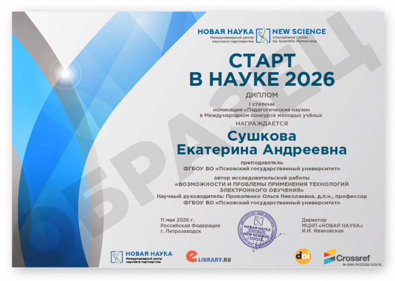 Международный конкурс молодых учёных СТАРТ В НАУКЕ 2026 Код конкурса: НИК-620 Дата проведения: 11 мая 2026 г. К участию в конкурсе принимаются статьи объемом от 5 до 12 страниц на русском и английском языках. Авторами одной конкурсной работы могут быть несколько человек. По итогам конкурса его участники получают: 1. Публикацию своей конкурсной работы (статьи) в сборнике статей конкурса «СТАРТ В НАУКЕ 2026». Сборнику присваиваются УДК, ББК, ISBN; 2. Именные Дипломы (I, II или III степени) по решению редколлегии; 3. Размещение сборника и публикации участника в Научной электронной библиотеке eLIBRARY (Договор №467-03/2018K); 4. DOI - международный цифровой идентификатор публикации (см. условия участия); 5. Бесплатный сборник статей конкурса «СТАРТ В НАУКЕ 2026» (в электронном виде); 6. По итогам конкурсов предоставляется выписка из Протокола рассмотрения и оценки конкурсных работ и другие необходимые для отчетности документы (по запросу участника). Сборник статей конкурса формируется в течение 5 дней после окончания приема конкурсных работ (статей) и будет размещен на нашем сайте в разделе Архив конкурсов. Оргвзнос: 990 руб. |