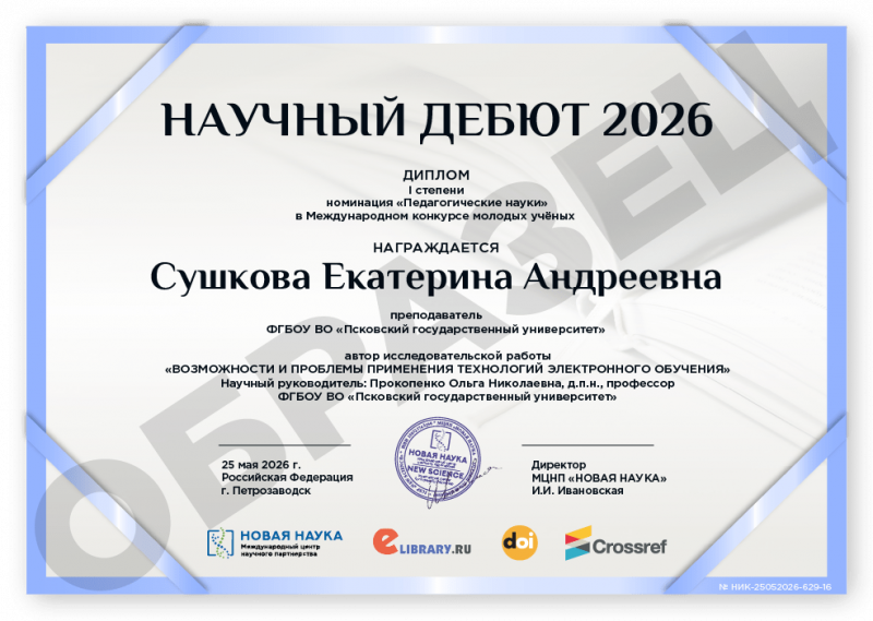 Международный конкурс молодых учёных НАУЧНЫЙ ДЕБЮТ 2026 Код конкурса: НИК-629 Дата проведения: 25 мая 2026 г. К участию в конкурсе принимаются статьи объемом от 5 до 12 страниц на русском и английском языках. Авторами одной конкурсной работы могут быть несколько человек. По итогам конкурса его участники получают: 1. Публикацию своей конкурсной работы (статьи) в сборнике статей конкурса «НАУЧНЫЙ ДЕБЮТ 2026». Сборнику присваиваются УДК, ББК, ISBN; 2. Именные Дипломы (I, II или III степени) по решению редколлегии; 3. Размещение сборника и публикации участника в Научной электронной библиотеке eLIBRARY (Договор №467-03/2018K); 4. DOI - международный цифровой идентификатор публикации (см. условия участия); 5. Бесплатный сборник статей конкурса «НАУЧНЫЙ ДЕБЮТ 2026» (в электронном виде); 6. По итогам конкурсов предоставляется выписка из Протокола рассмотрения и оценки конкурсных работ и другие необходимые для отчетности документы (по запросу участника). Сборник статей конкурса формируется в течение 5 дней после окончания приема конкурсных работ (статей) и будет размещен на нашем сайте в разделе Архив конкурсов. Оргвзнос: 990 руб. |