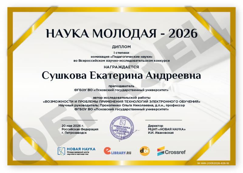 Всероссийский научно-исследовательский конкурс НАУКА МОЛОДАЯ - 2026 Код конкурса: НИК-626 Дата проведения: 20 мая 2026 г. К участию в конкурсе принимаются статьи объемом от 5 до 12 страниц на русском и английском языках. Авторами одной конкурсной работы могут быть несколько человек. По итогам конкурса его участники получают: 1. Публикацию своей конкурсной работы (статьи) в сборнике статей конкурса «НАУКА МОЛОДАЯ - 2026». Сборнику присваиваются УДК, ББК, ISBN; 2. Именные Дипломы (I, II или III степени) по решению редколлегии; 3. Размещение сборника и публикации участника в Научной электронной библиотеке eLIBRARY (Договор №467-03/2018K); 4. DOI - международный цифровой идентификатор публикации (см. условия участия); 5. Бесплатный сборник статей конкурса «НАУКА МОЛОДАЯ - 2026» (в электронном виде); 6. По итогам конкурсов предоставляется выписка из Протокола рассмотрения и оценки конкурсных работ и другие необходимые для отчетности документы (по запросу участника). Сборник статей конкурса формируется в течение 5 дней после окончания приема конкурсных работ (статей) и будет размещен на нашем сайте в разделе Архив конкурсов. Оргвзнос: 990 руб. |