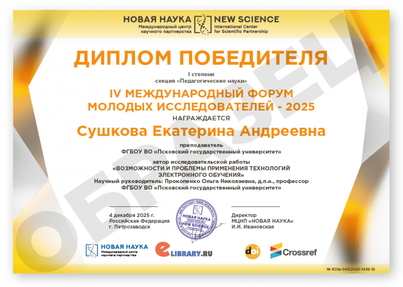 IV Международная научно-практическая конференция МЕЖДУНАРОДНЫЙ ФОРУМ МОЛОДЫХ ИССЛЕДОВАТЕЛЕЙ - 2025 Код конференции: КОФ-1436 Дата проведения: 4 декабря 2025 г. К участию в конференции принимаются статьи объемом от 5 страниц. Сборник статей конференции с присвоением ISBN, УДК, ББК формируется в течение 3 дней после окончания приема статей и будет размещен на нашем сайте в разделе Архив конференций. Бесплатно каждому автору предоставляется: